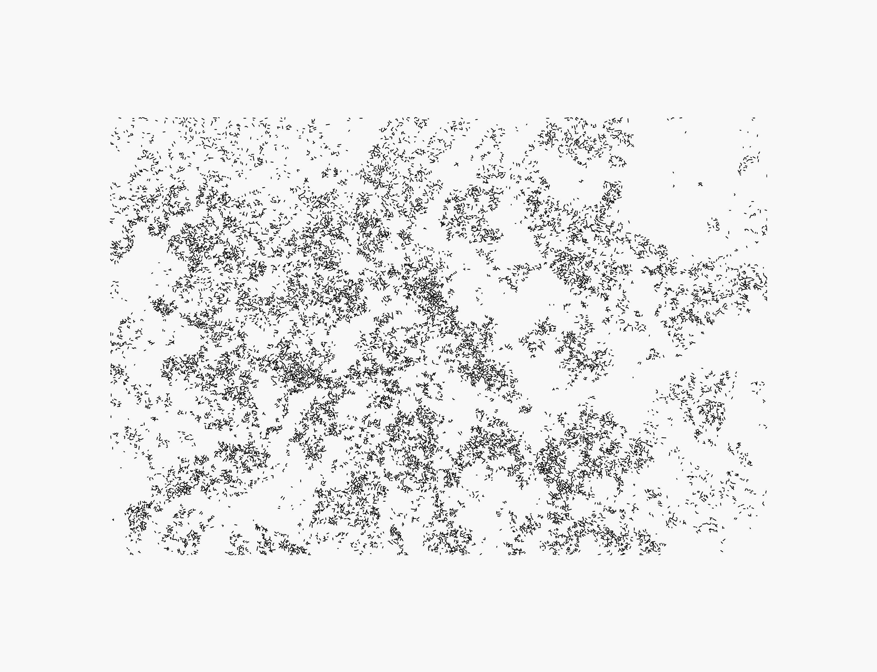 eine biometrische zustandsaufnahme von vergänglichen strukturen. gedruckt werden die strukturverläufe mittels uv-druck (welcher auch zum drucken von braille-schriftzeichen verwendet wird), als leichte erhöhungen auf weissem dibond.